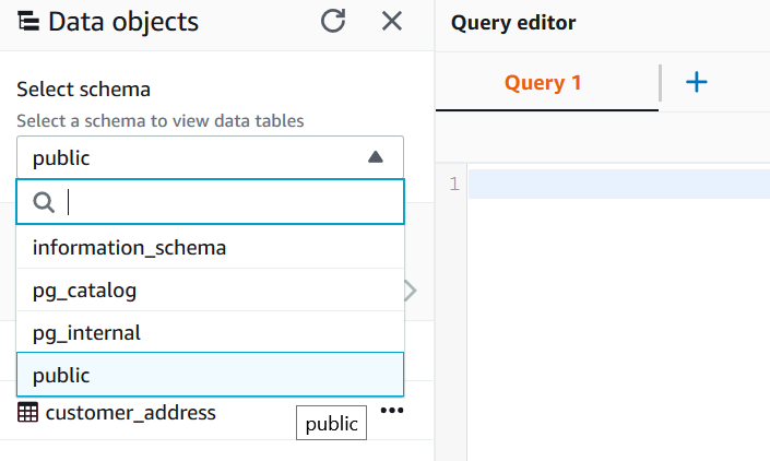 | You will see customer and customer_address tables. These tables have been pre-created. |